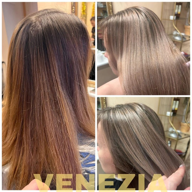 Преимущества: Хочу сказать БОЛЬШОЕ СПАСИБО Мастеру Каролине , хотела вывести рыжену из своих волос и перейти из теплого в холодный оттенок ..в другом салоне сказали с первого раза не получится .Написала в Венецию ...пришла к мастеру ...Каролина обо всем внимательно расспросила ...рассказала ,что может получится... Результатом безумно довольна ,холодный цвет ,как и хотела .После окрашивания мастер написала и рассказала как правильно ухаживать ) Теперь только к вам 😍😍😍